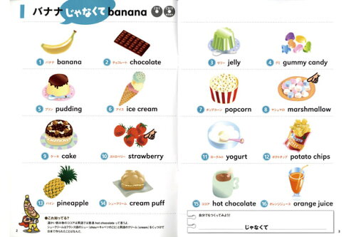 『CD&絵本 バナナじゃなくてbananaチャンツ(カード付)』【幼児英語教材】【知育教材】【絵本】【CD】【キッズ】【幼児】 身近なカタカナ英語と、正しい英語発音を並べて覚える、ユニークなチャンツ集。